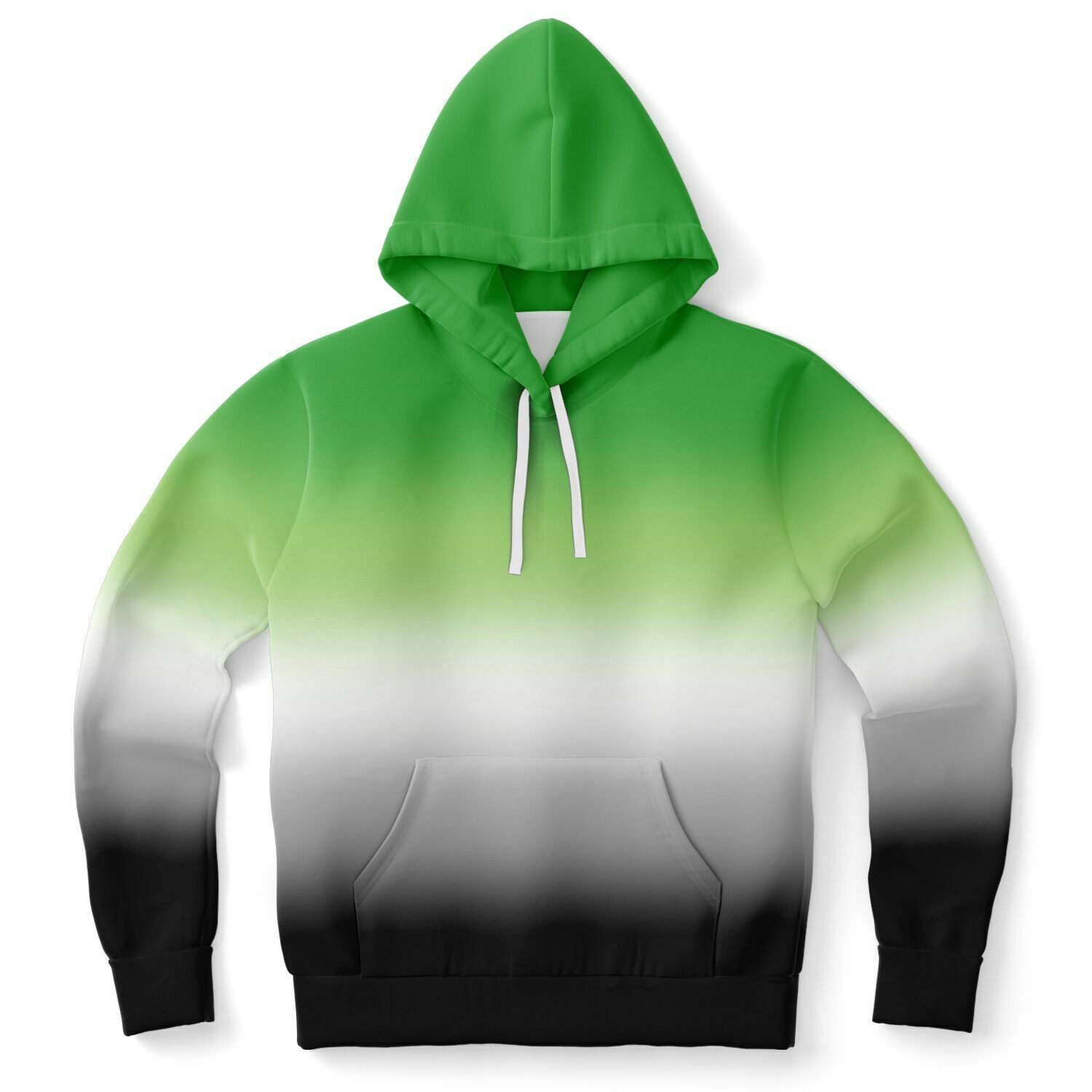 Soft & cozy pullover hooded sweatshirt in a beautiful ombre gradient of the Aromantic & Aro-spectrum pride colors. Perfect for anyone looking for a subtle way to wear your pride on those chillier days.