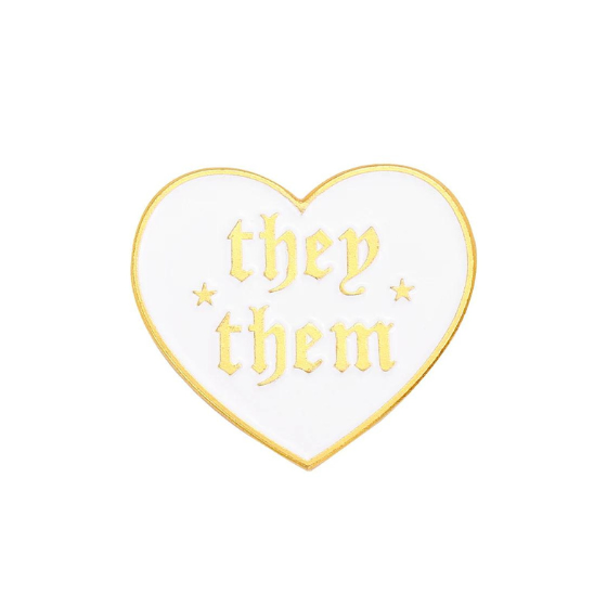 Display your They/Them pronouns with this beautiful minimalist aesthetic style heart enamel pin.