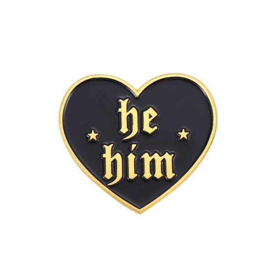 Display your He/Him pronouns with this beautiful minimalist aesthetic style heart enamel pin.Â